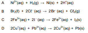 1.8 Which ONE of the following reactions will proceed spontaneously under (2)