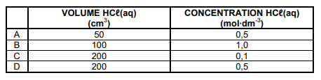 Which ONE of the following combinations of volume and concentration of