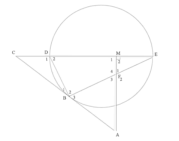 In the diagram, a circle passes through D, B and E. Diameter ED of the circle is produced to C and AC is a tangent to the circle at B. M is a point on DE such that AM
