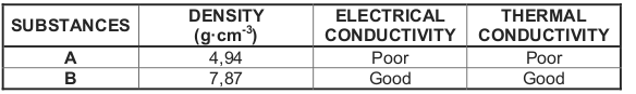 2.5 The physical properties of two substances, A and B, are shown in the table