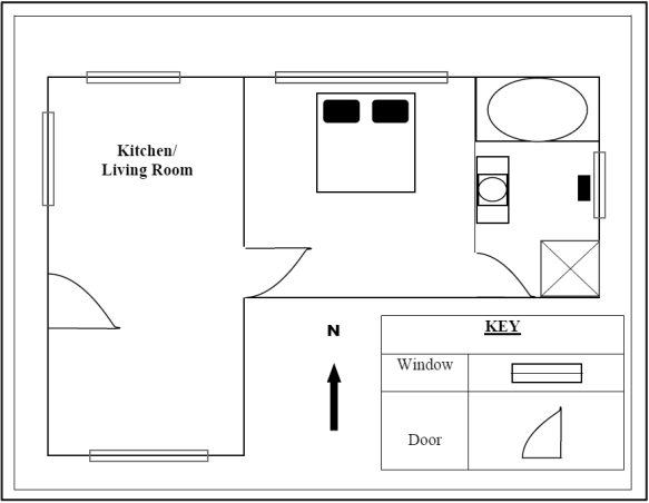 Given below is a simple floor plan of a one-bedroom flat. Study the plan and answer the