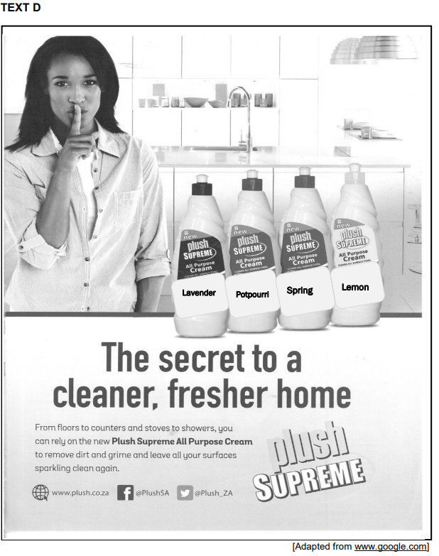 Study the advertisement (TEXT D) below and answer the set questions.