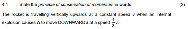 4.2 Calculate the velocity of B in terms of v immediately after the internal