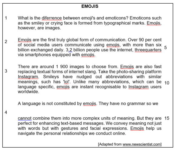 5.1 Read the passage (TEXT F) below, which has some deliberate errors, and  answer the set questions.
