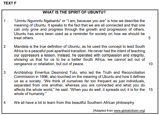 (b) Mandela is the true definition of Ubuntu, as he used this concept to