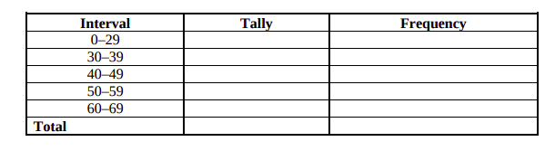 5.2 Complete the frequency table for the Mathematical Literacy test percentages shown