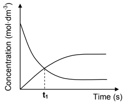 6.4 How does the rate of the forward reaction compare to that of the reverse reaction at t1? Write down only HIGHER THAN, LOWER THAN or EQUAL TO. (1)