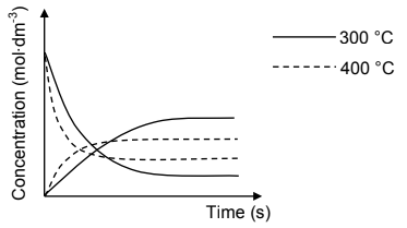 6.6 Redraw this curve in the ANSWER BOOK. On the same set of axes, sketch the curve that will be obtained at 400 °C. Clearly label the curves as 300 °C and 400 °C respectively. (2)