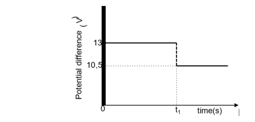 The graph below shows the potential difference across the terminals of the battery as a function of time.