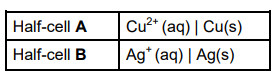 The table below shows two half-cells, A and B, used to assemble an electrochemical