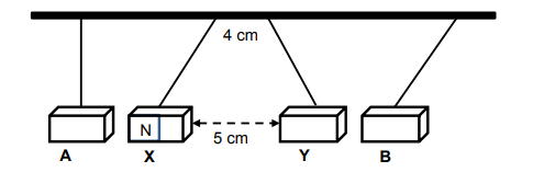 The two bars in the middle are bar magnets (X and Y) and the distance between them