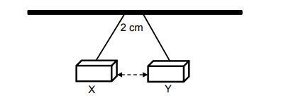below. The points of attachment of X and Y on the ceiling are 4 cm apart.