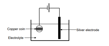 The simplified diagram below represents an electrolytic cell used to electroplate a